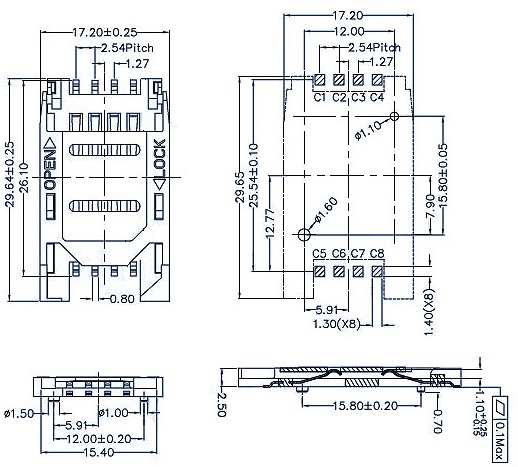 DC 5V 0.5A≤100mΩSIM卡座29.65*17.2*2.5mm