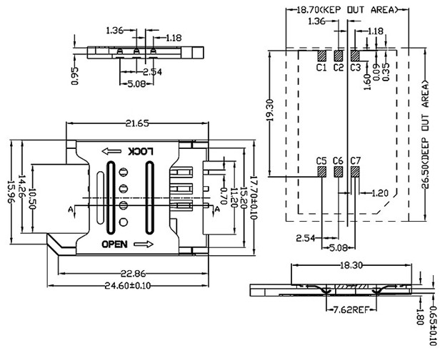 DC 5V 0.5A≤100mΩSIM卡座24.6*17.7*1.8mm