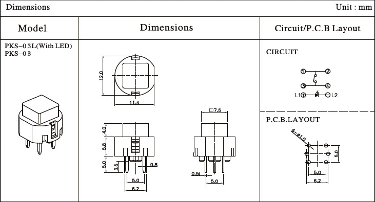 35V 0.01A12mm*11.4mm*9.8mm100,000/50,000cycles130±60gf/200±80gf1.0mm