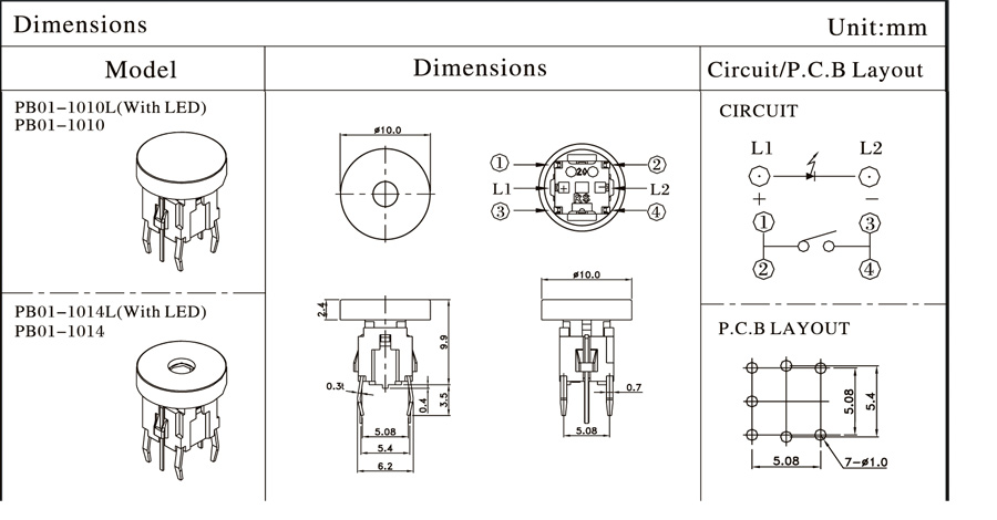 12VDC 50mA10mm*10mm100,000cycles160±50gf/250±50gf0.25±0.1mm