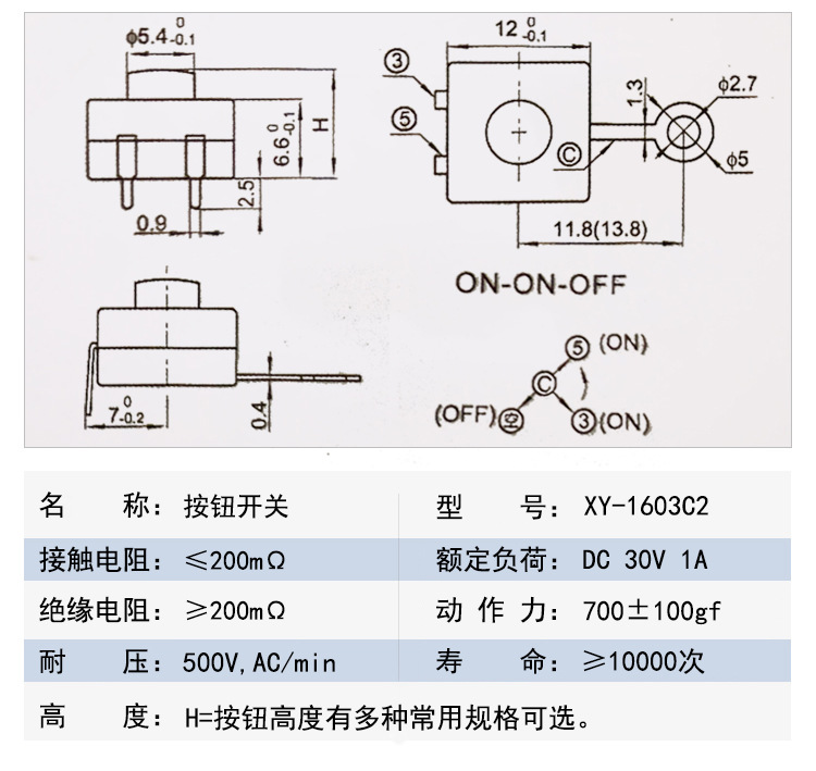 型号15E产品类型按钮开关按钮头直径φ5.4±0.1