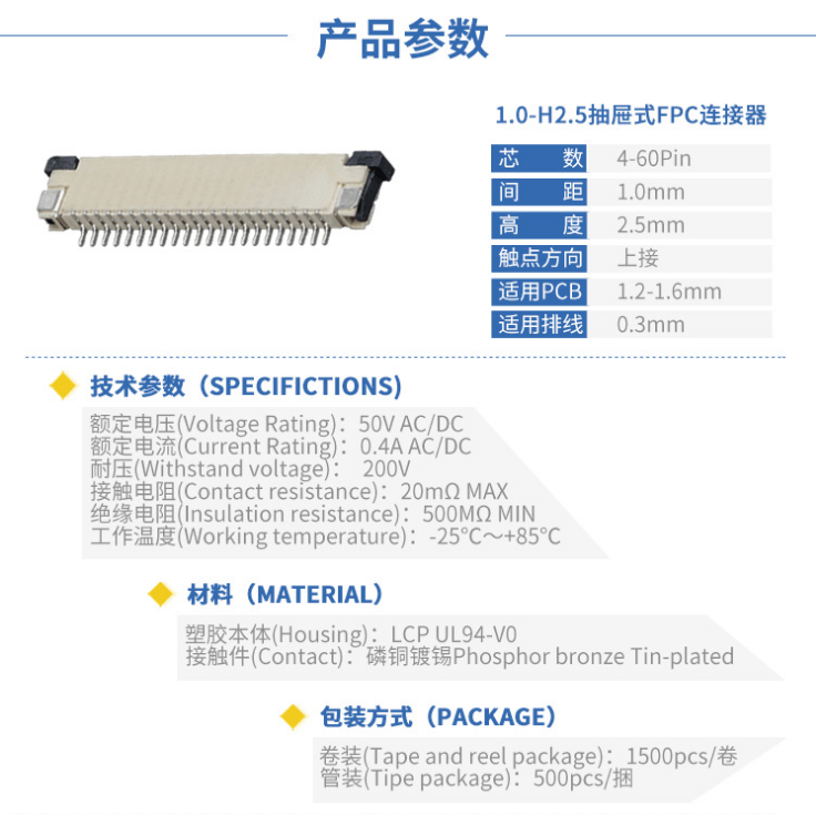 1.0mm间距H2.5抽屉式上接