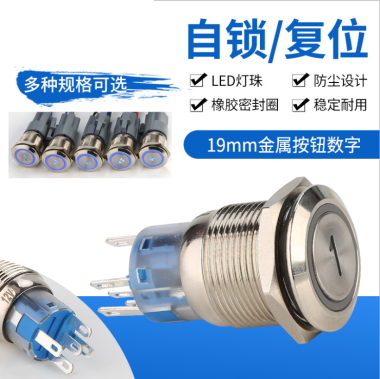 19mm金属开关按钮数字自复位圆形带灯电源防水自锁LED灯珠